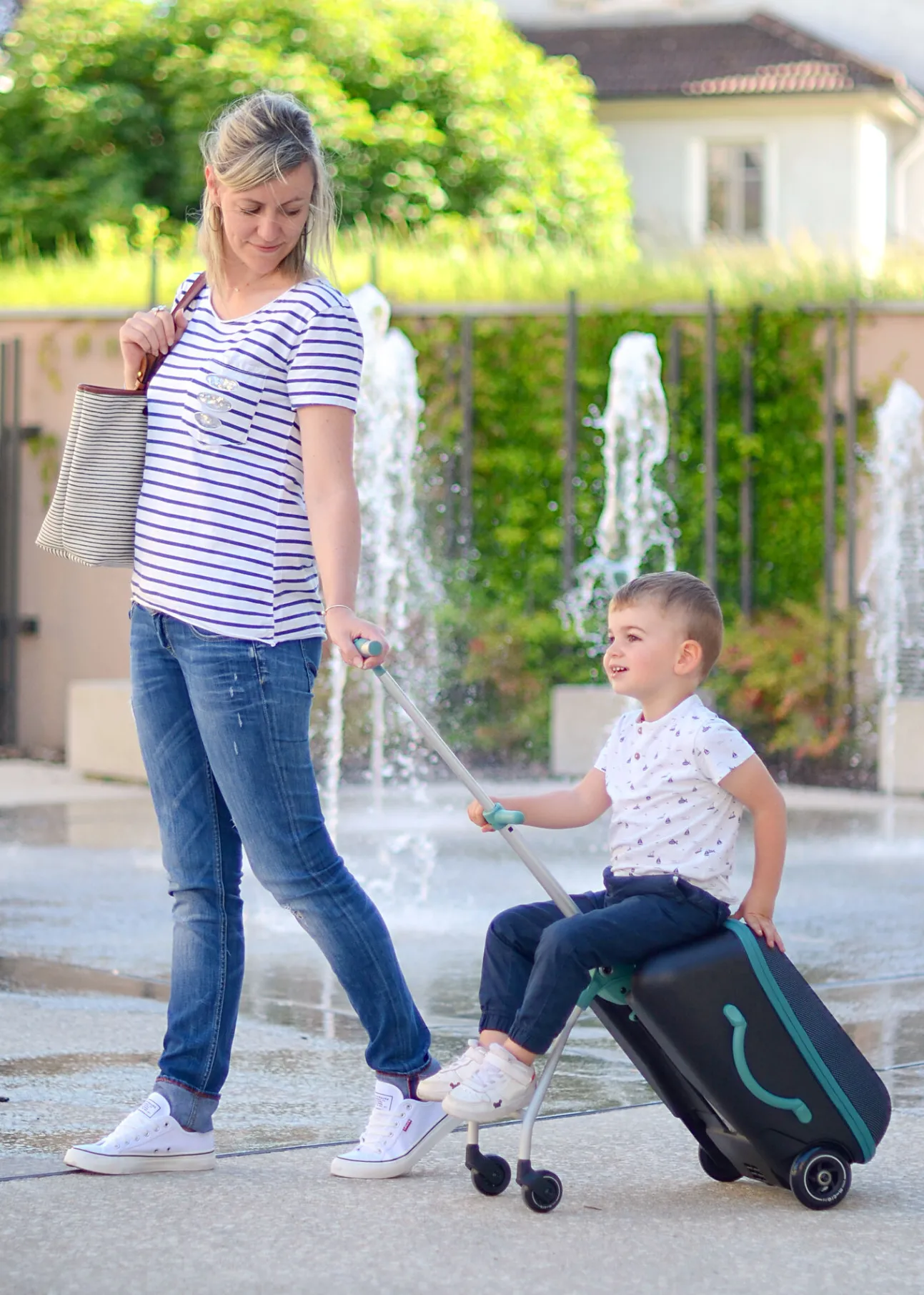 - Facile A Utiliser : Sortez Les Roues En Appuyant Sur Les Boutons Poussoirs Et Ainsi Faire Avancer La Valise Sur Quatre Roues. Votre Enfant Pourra S’Asseoir Et Se Laisser Glisser En Toute Serenite